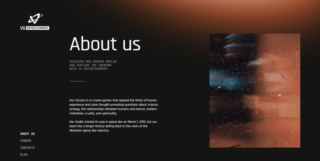 VG Entertainment Ltd (наша головна компанія) оголосила про рішення припинити використання торгової марки Vostok Games. Зараз ми працюватимемо під назвою VG Entertainment і використовуватимемо новий логотип. Будьте певні, наша основна місія „відкривати нові ігрові світи та досліджувати незвідане“ залишається такою ж, оскільки ми продовжуємо повну роботу над новою грою.